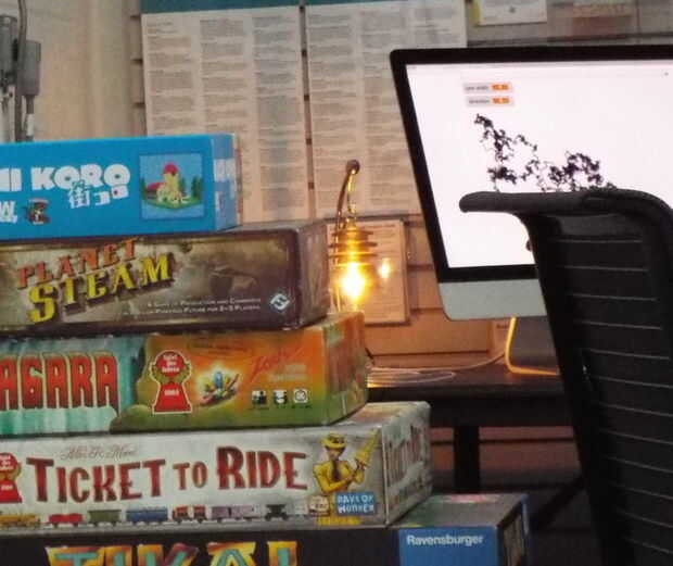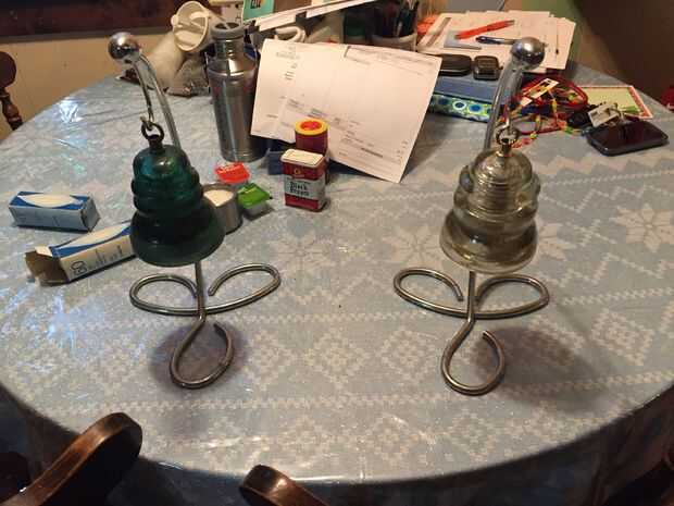 Tenía dos plátanos que agarré en una venta de garaje hace años. Hicieron soportes de gran mesa para un par de luces en lo alto de mi estantería. Una pieza de automoción había acanalado split telar tubería mantiene el cable en jaque.