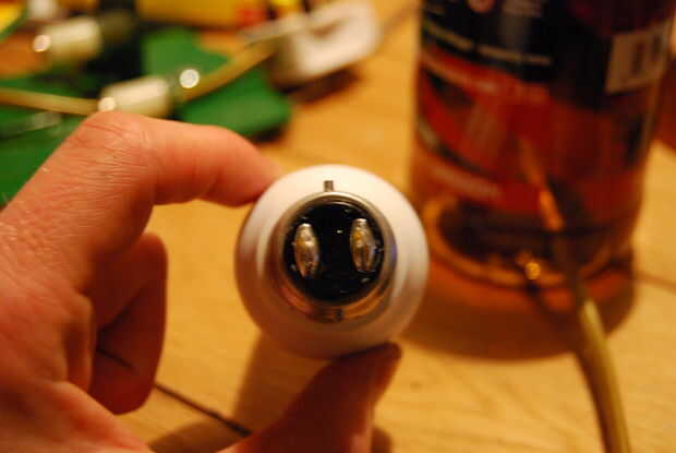 3) Al final 1/3 del alambre en la parte inferior de la bombilla de la soldadura (bombillas bayoneta tienen dos pequeños nódulos ovales metal en la base que es donde se conectan a los accesorios (ver fotos) - no importa cual cable suelda que nódulo suelda a mientras la electricidad AC que casi todos).