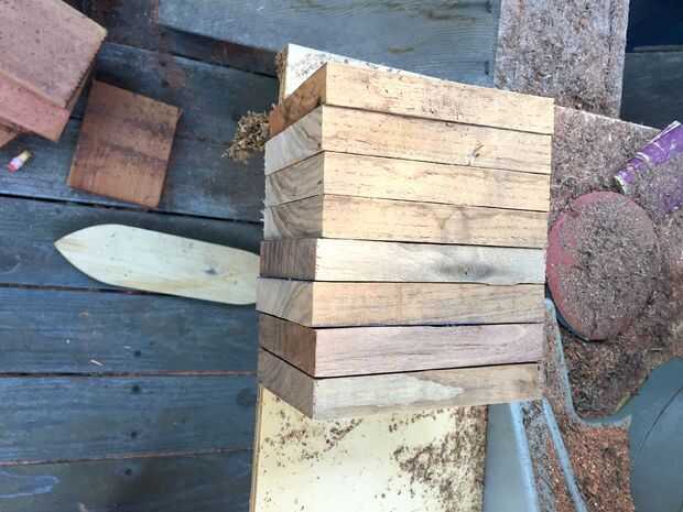 Es de 4" de ancho, cortar a unos 6" de altura. Dimensiones finales varían. Pegado, les sujeta y deje secar durante 10 horas. Como se puede ver porque no tengo muchas abrazaderas, usé 2 y había alineado a la acción. ¿Perezoso? Sí.