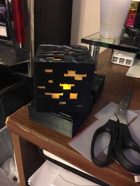 En una tarde estaba aburrido y quiso crear algo, me acordé de las lámparas de minecraft que había visto la semana pasada y decidí crear mi propio.Fui a Sketchup y empezó a crear el archivo, una imagen creó el patrón de agujeros y reunidos las 6 caras