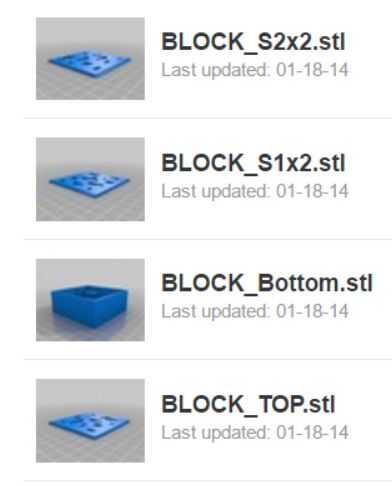 He descargado a los sistemas de archivos de Thingiverse que amable la gente agradable que los creó, lo suficiente como para compartir. Se encuentran aquí y aquí. Un sistema tiene los lados y la base del cubo, mientras que el otro tenía una base que puede acomodar las baterías AA regulares.