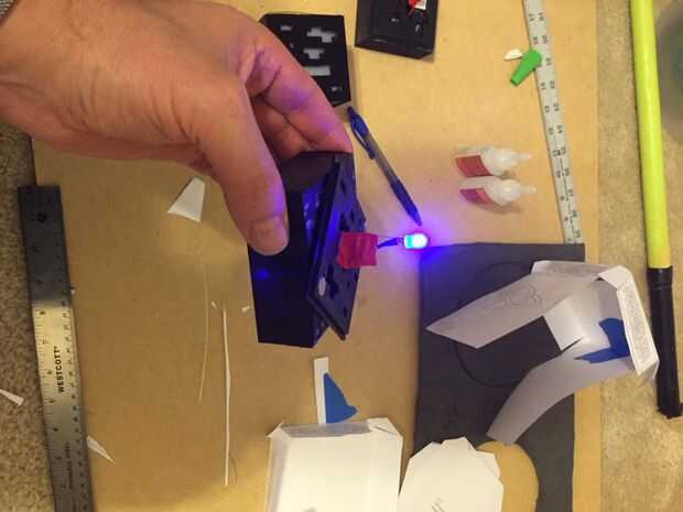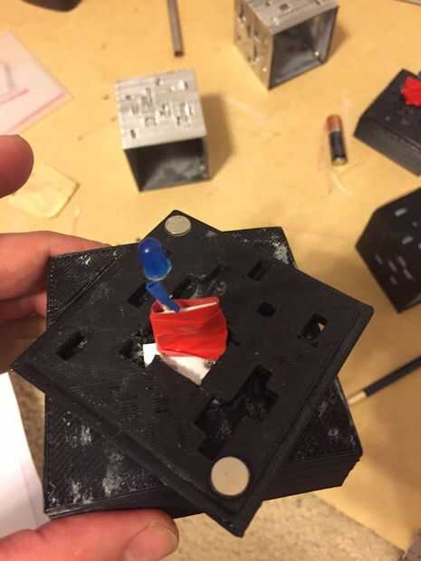 Una vez que se instalaron las baterías y los LEDs con cable, he pintado dos de los cubos. Después de que los cubos fueron pintados he instalado los difusores.
