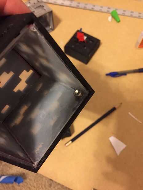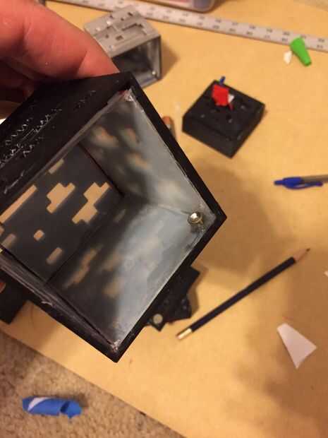 Con una sala llena de niños de 8 años de edad es probable que las lámparas no duraría mucho tiempo sin ser conectado de alguna manera a algo. Así que, os adjunto los imanes de neodimio a la base y el cubo. Desordenado sobre las polaridades en unos pocos, pero la mayor parte llegó a alinear. Los cubos ahora permanecen firmemente en la base. Les torcido hacia los lados por lo que parecen ser en las rocas y las bases no dan la falsa impresión de que son parte del mineral. Después de todo, en Minecraft su supuesta para ser un cubo hecho de cuadrados, rectángulos no.