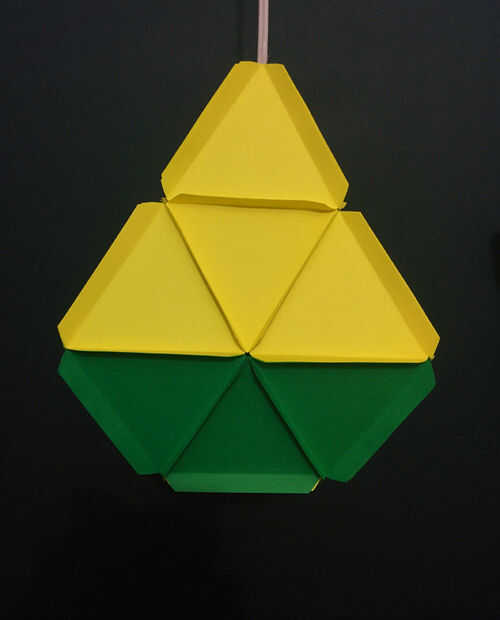 Sugerencia: Si le colocas un cono de 3 módulo en la apertura triangular por debajo, que habría sido la forma simétrica como dos pirámides Unidas invertida.