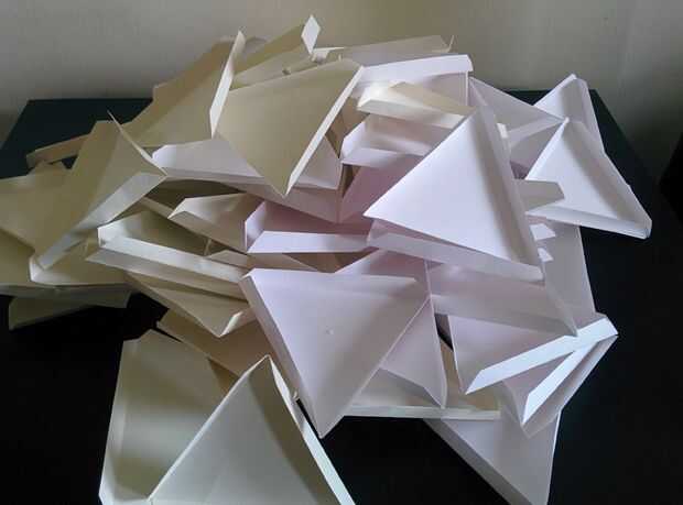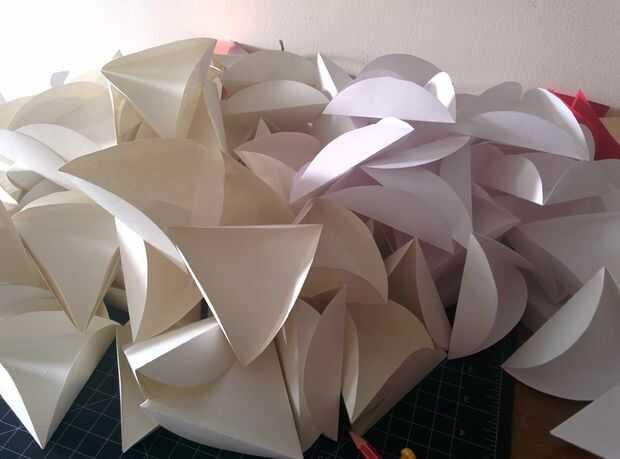 En mi lámpara original, no cortar de los pétalos (la parte plegada del círculo), pero aquí lo estoy haciendo por lo que se logra una mirada geométrica más sutil de la lámpara.
