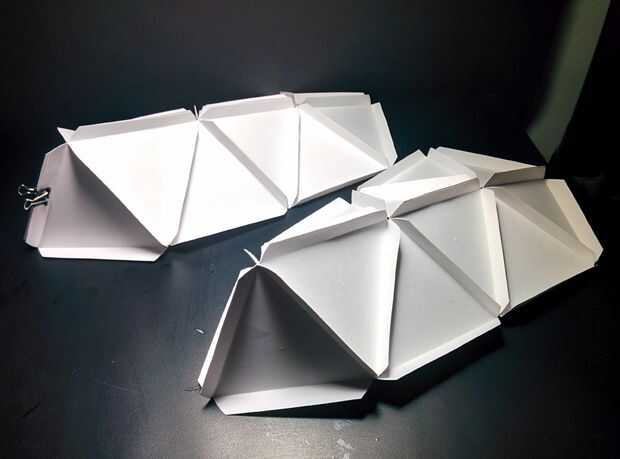 - Use un clip binder para unir los módulos de dos, se dobla la forma entera.