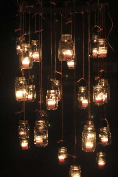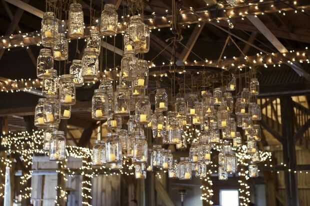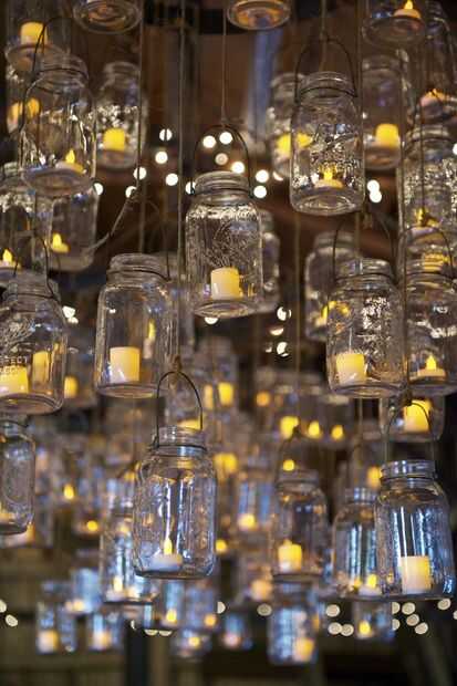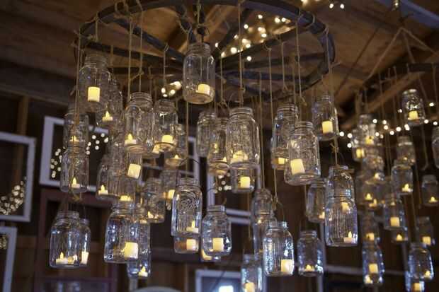 Además de ser un lugar hermoso, también son excepcionalmente bueno con decoraciones y esto condujo entre otras grandes ideas, un maravilloso conjunto de lámparas de los tarros de masón, una rueda de carro, barril aros, alambres y unos cordeles.