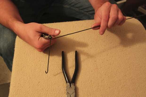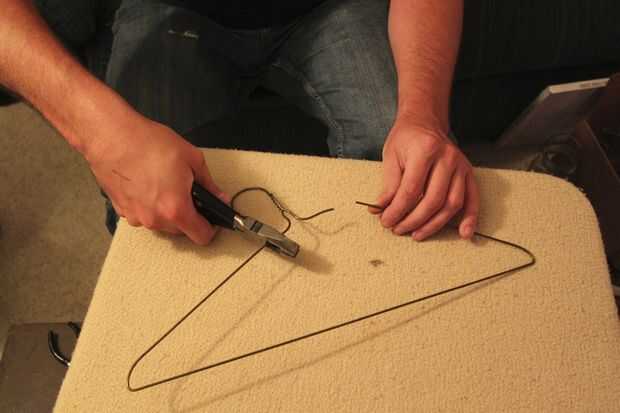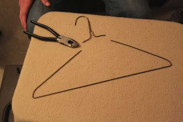 Para este paso necesita una percha o pieza de alambre, así como un par de pinzas de punta de aguja y liniero.