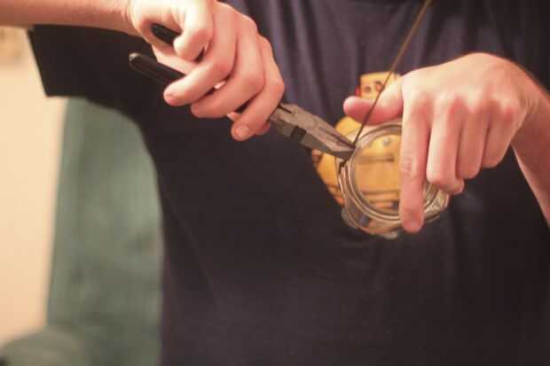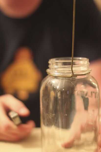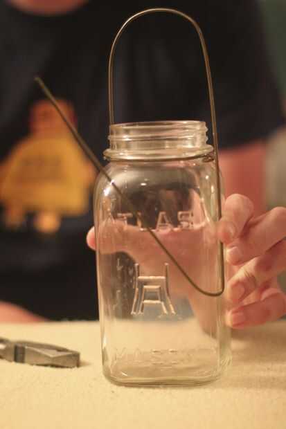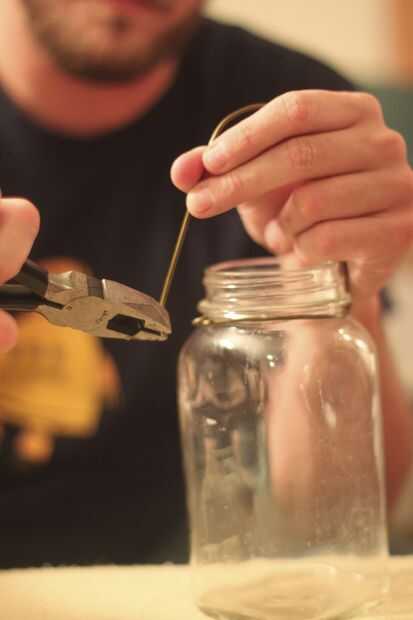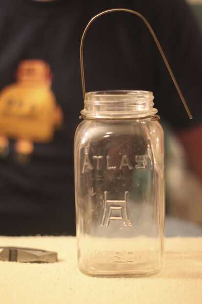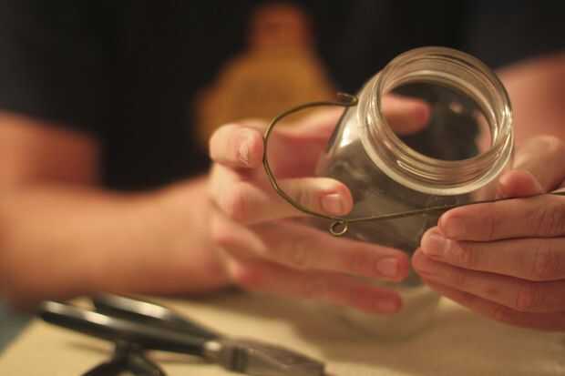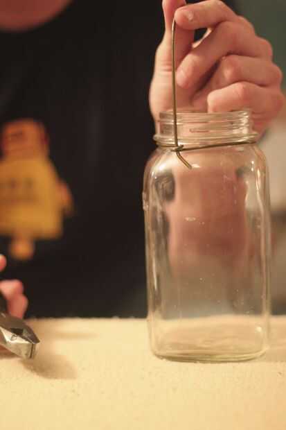 •Wrap el alambre alrededor del cuello de la jarra y doblar el extremo del alambre hacia arriba a través del gancho dobló antes