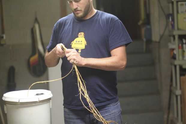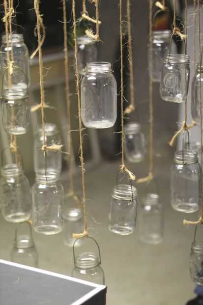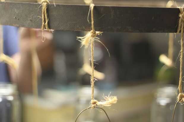 Los tarros se cuelgan en varias alturas y parecía más fácil de empezar atando corto a largo