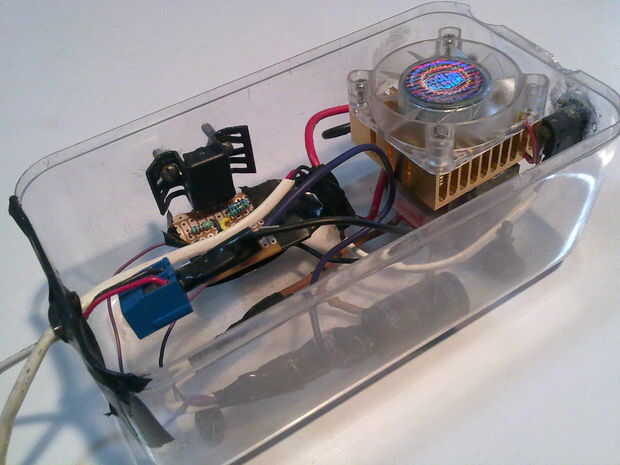 Lámpara de LED de DIY convertir al generador de energía Solar linterna caseraMaterial:Lámpara de LED 7 x 3 Watt super LED con alimentación fuente 220 v AC a 25 v DCEliminar la fuente de alimentación (adaptador de CA)Convertir LED serie paralelo circu