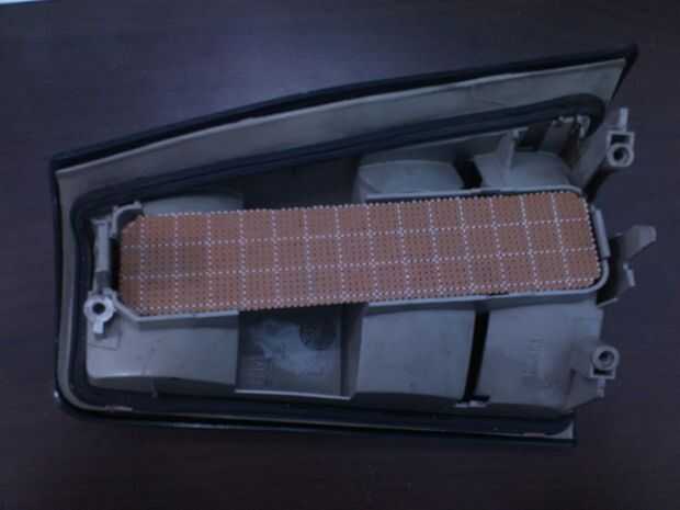 Retire las luces traseras del coche y medir el dimessions de montaje original y cortar un pedazo de cartón prueba (o cualquier aislante) para su montaje