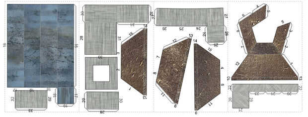 Son el corte y doble las instrucciones para las lámparas. Cada número de la ficha se corresponde a un número de borde. Las líneas punteadas indican los pliegues y las líneas sólidas indican bordes de corte.