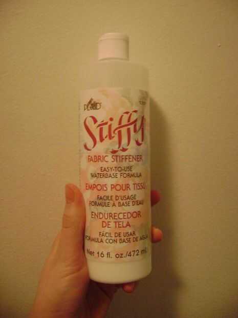 Hemos sido capaces de hacer 3 vestidos con una botella de 472 ml de Stiffy (estirado hacia fuera con agua y pegamento). Cuánto necesita dependerá del tamaño y material de la ropa que eliges.