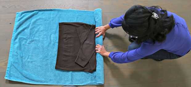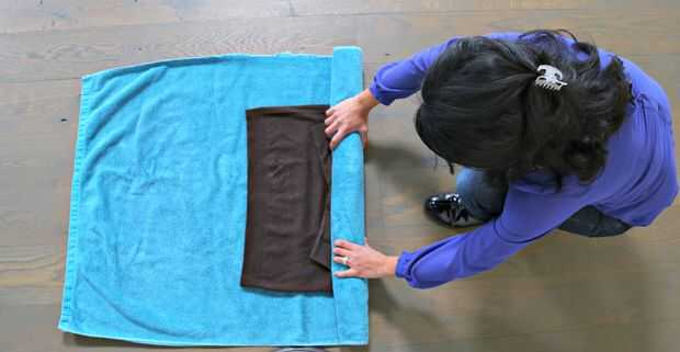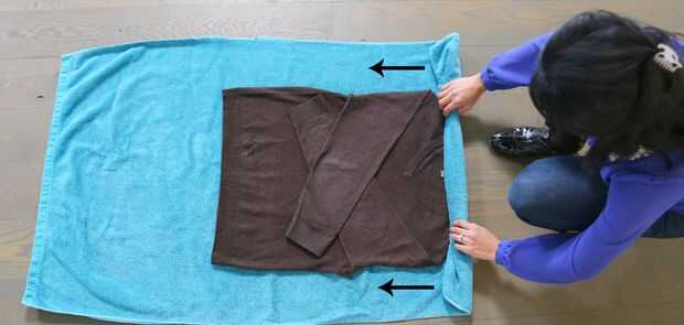 Estoy en un rollo. Bien, estamos todos a punto de ser. Tomando un lado de tu toalla, rodar hasta el otro extremo, el suéter del balanceo para arriba como vas. La lana es delicada y debe tratarse en clase o los hilos de rosca pueden llegar fuera de control. Apriete como rueda para arriba. Repita un par de veces, hasta que el suéter es apenas húmedo. Si tu toalla no parece estar absorbiendo más agua, agarrar otro.