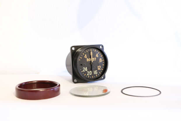 La carcasa entera para el calibre es de baquelita y tiene ese olor característico de electrónica antigua. El bisel frontal rojo fácilmente fue un poco duro eliminar el primer tiempo, pero después de se agregó una pequeña cantidad de grasa a la rosca para facilitar el mantenimiento futuro.