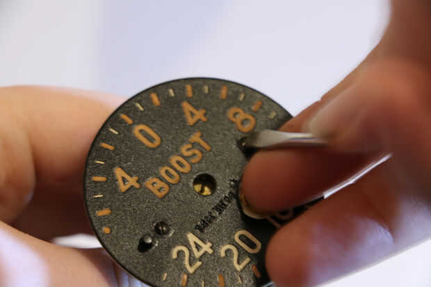Con el misma mucho cuidado de no rayar nada saque los dos tornillos de latón aún más pequeños y sale de la cara.
