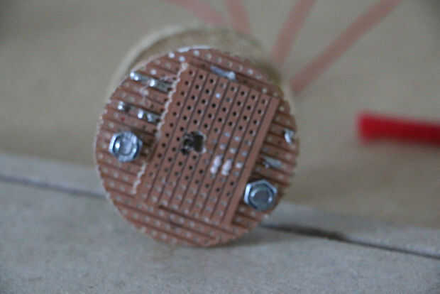 Hay unos tableros de arranque prefabricadas para estos motores pero lamentablemente eran demasiado pequeños como para caber dentro de este pequeño calibre. Así que simplemente construí mi propio uso de franja, con un agujero Sierra para cortar a tamaño. Esta placa hace frente mitad del mecanismo.