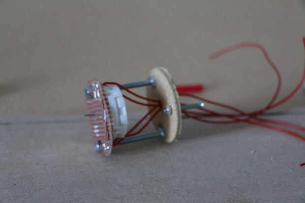 El motor y sus cables soldados a la Junta de tira y la parte delantera y trasera mitad se separa utilizando algunos tornillos largos.