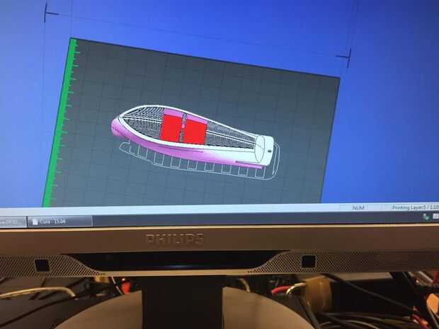 Het 3D printen ging helemaal het goed motor punt era dat alle vlakken Cruz zijn de ordenador. Hierdoor lijkt het alsof het bootje niet geprint kan worden. De rode vlakken Kunnan worden genegeerd.