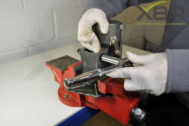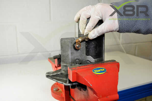 Retire la tuerca de 12mm y el cable en el perno que va en el lado del motor de arranque, deslice suavemente el cable en el perno.