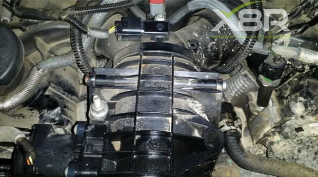 Quite los 4 tornillos de x Torx asegurar el servomotor a la caja de mariposa. (se pueden ver los dos tornillos de la parte superior parte inferior izquierda de la imagen)