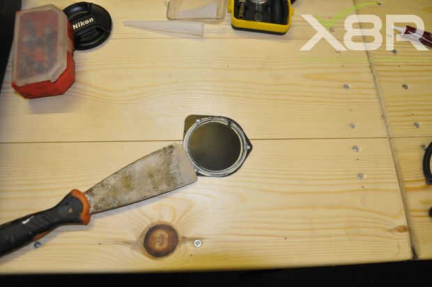 Quitar viejos restos de sellador de silicona de la placa de motor frontal de compresor y superficie de contacto. Tomar algún sellador de Junta instantánea y se aplican a las superficies de contacto, no se aplican demasiado tanto como esto puede tener fugas en el motor del compresor y causar daños. Vuelva a colocar la placa frontal usando los 3 tornillos de cabeza cruzados otra vez recordando el orden de los tornillos.