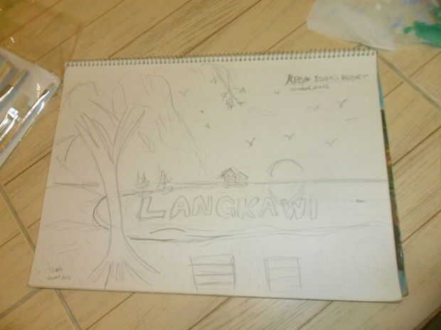 Entonces empecé a dibujar una escena en la playa de la isla de Langkawi. Me gustó y entonces decidí que esta escena es lo que realmente quiero para pintar al óleo.