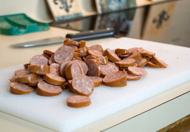 Langostinos Cajun y Jambalaya salchicha (1 / 5 paso)