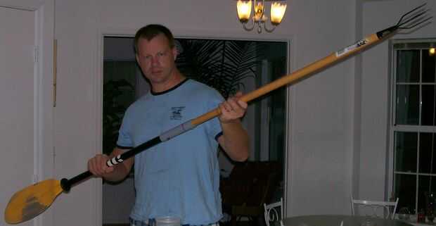 El polo tenía un extremo cónico que forma la cabeza de la lanza muy apretado después de apisonar. Copias de la conexión con un tornillo para madera en el agujero en la base de la cabeza de la lanza.