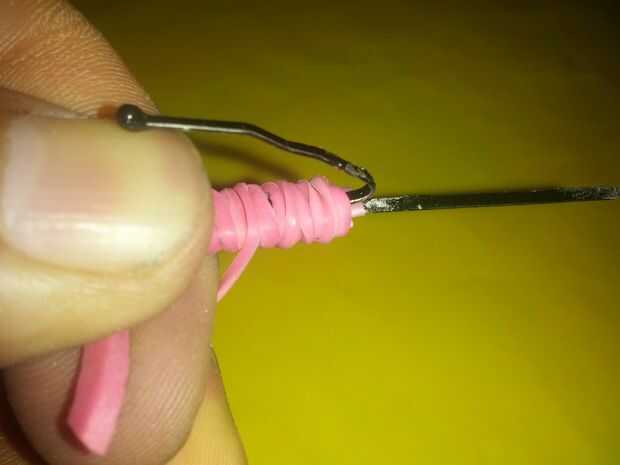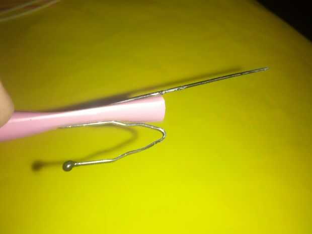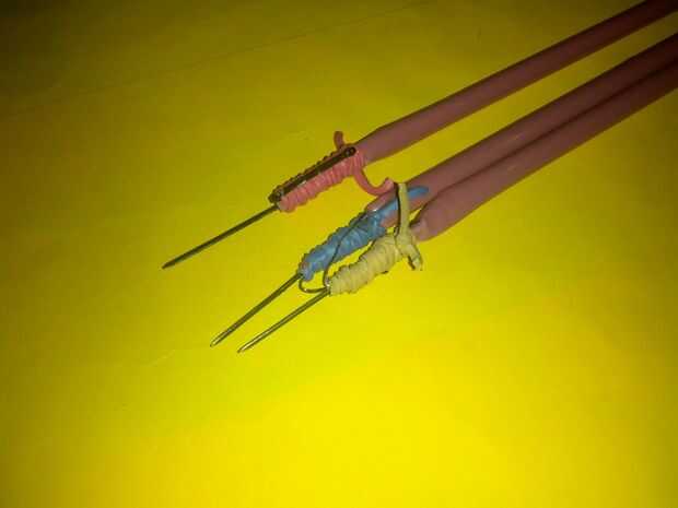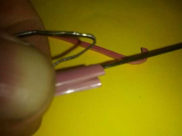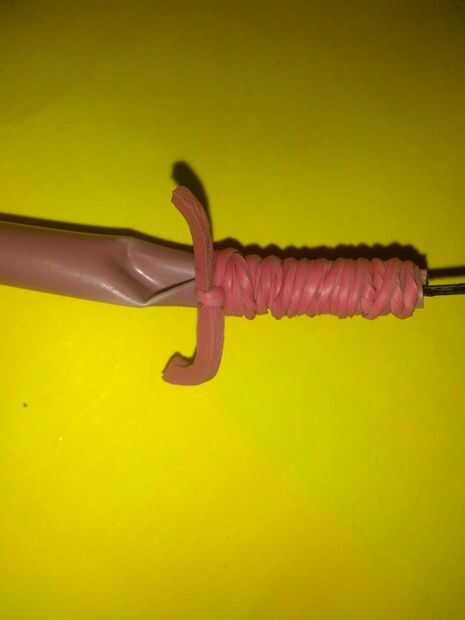 No ya con la frecuencia necesaria, para que ambos extremos está cerca otra vez, tratando de hacer lo contrario del nudo el lado doblado de la horquilla. El dardo se realiza, se pueden hacer, si quiere competir con amigos, puede utilizar diferentes colores de gomas o paja.