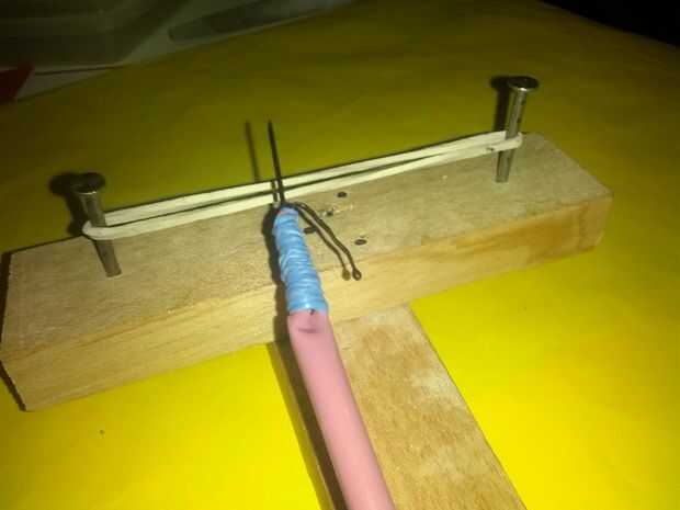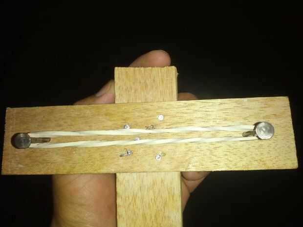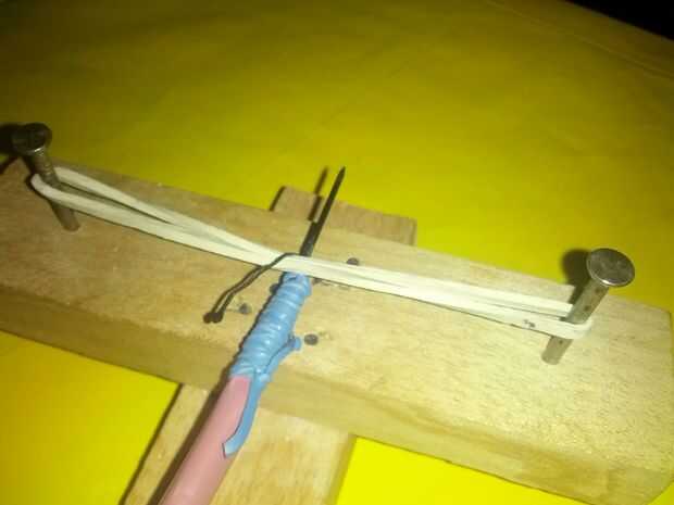 Usted necesita encontrar una técnica, puede mover la goma elástica en la altura del que sobresalen clavos y también, puedes cambiar la posición del dardo, práctica!