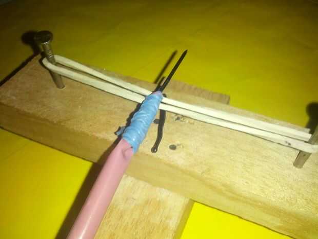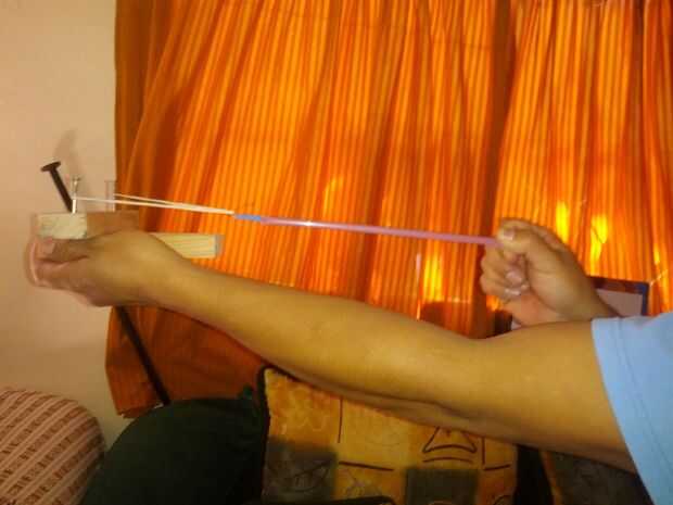 Tenga mucho cuidado al lanzar dardos, sosteniendo el arco con la mano, mi recomendación es como se ve en las fotos, pero puede variar como todos, con sus otros lugares mano que el dardo con el extremo de la horquilla en la goma y se extienden más de lo que usted puede, se puede colocar el objetivo y la lanza. ¡Bien hecho!