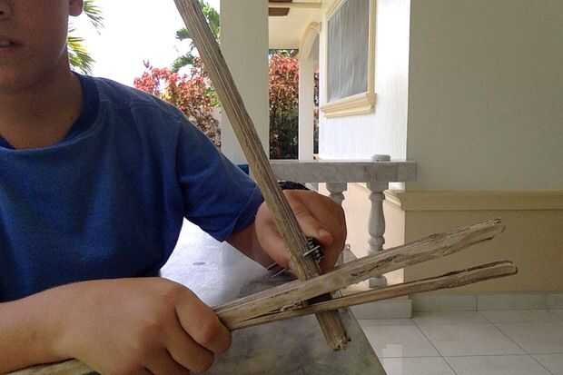 es un chip hecho lanza un kit de pesca para caza y pesca. Es ligero y fácil de llevar.Paso 1: hoja de coger un cuchillo sin Handel y un tube.attach de plástico de tubo vacío de la hoja con el tubo como en la foto. Applay masilla o hotglue algunos agu