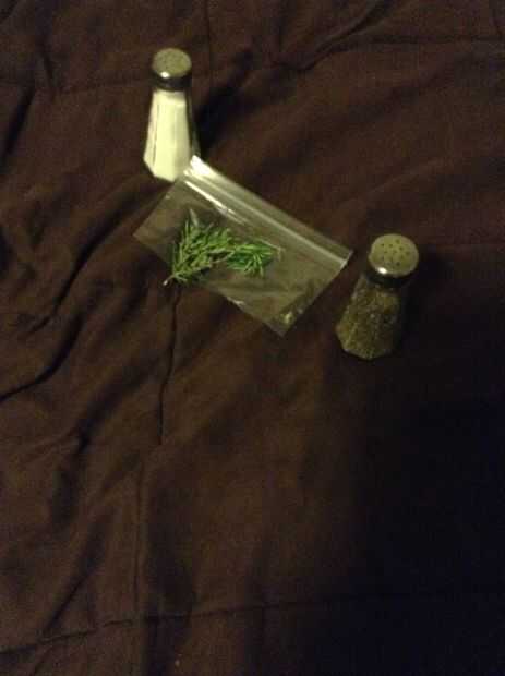 Para un kit de cocina tienen ahora un papel de estaño, pero para una carne rub pone un poco de sal y pimienta y el Romero en una bolsa ziplock