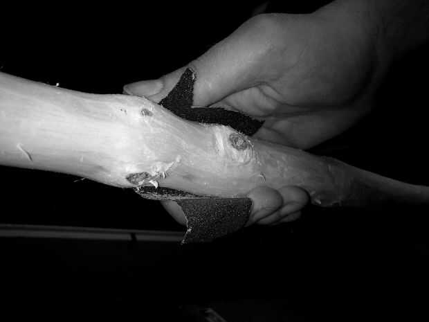 Lo primero, necesita encontrar un árbol y luego cortarlo. Después de separar la corteza de la madera. Luego alrededor de los bordes y moler con papel de lija!