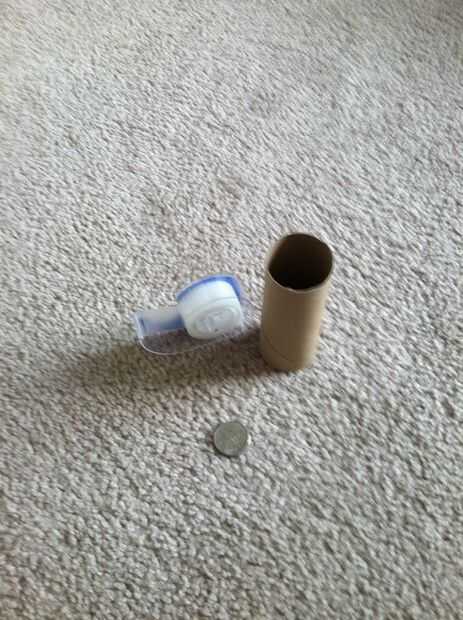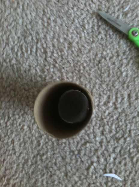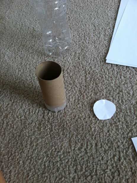 Con cinta adhesiva por la parte superior del rollo y coloque un trozo de papel redondo en el lado opuesto para el cohete no se pega