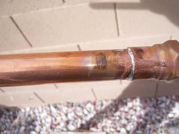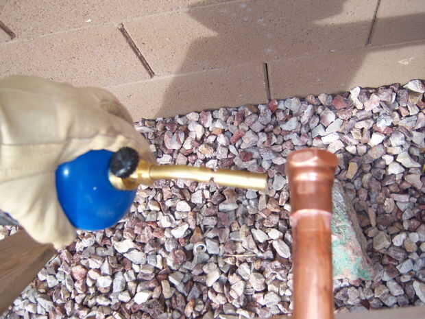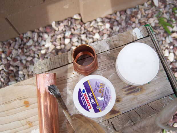 La conexión a la tubería de cobre de la soldadura. Se recomienda para recubrir el extremo del tubo y el interior de la conexión con el flujo antes de soldar. Ayuda a la soldadura flujo dentro de la articulación. Utilizando el calor de la antorcha la conexión, no el tubo sí mismo. Una vez caliente suficientemente la soldadura derretirá y ser aspirada dentro de la articulación. Limpie con un trapo y deje que se enfríe.