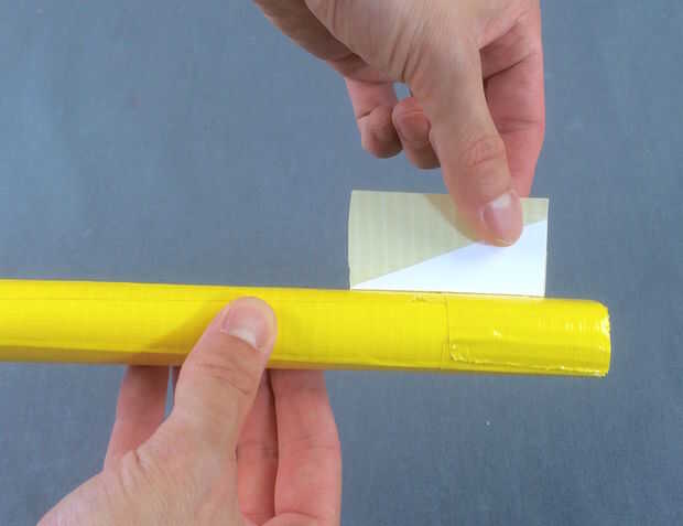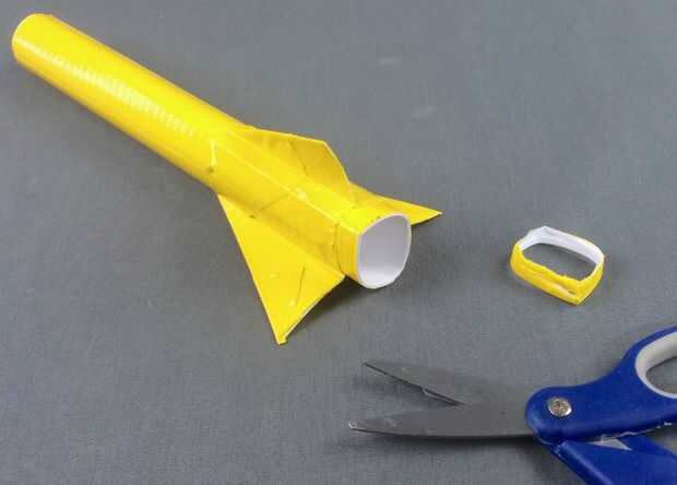 - Corte la parte de atrás 1/4" del cohete para quitar cualquier margen de cinta del conducto que podría hacer difícil Monte el cohete en el barril.