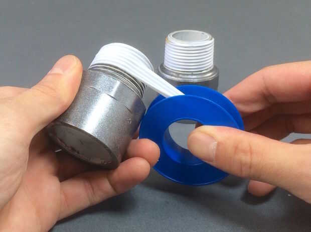 - Envuelva una capa de hilo sellado cinta alrededor de la parte roscada de cada adaptador 1" como se muestra.