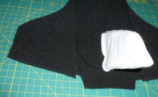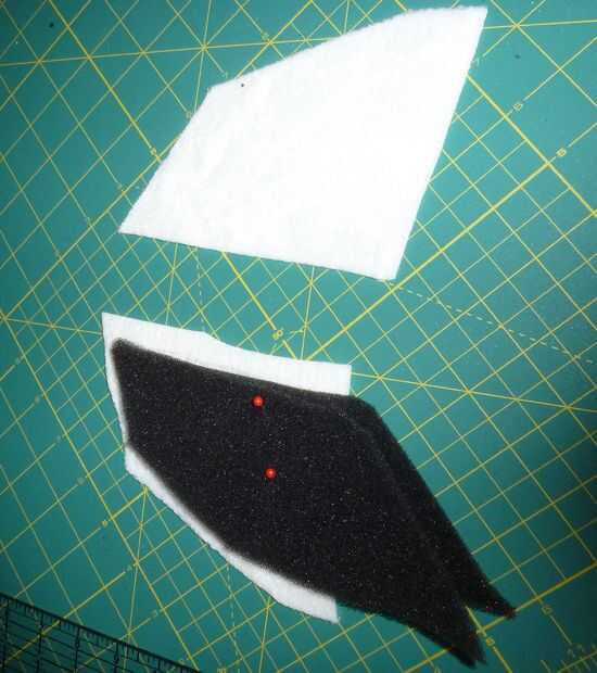 Utilizar las piezas de la cola como una plantilla para cortar dos trozos de lana blanca, dejando aproximadamente 1/2" alrededor de los bordes para las costuras. Sólo se necesita aproximadamente 4" de alto, sólo queremos cubrir la parte superior de la misma.