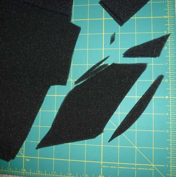 Duplicar esos pequeños trozos de filtro extra y recortar las esquinas un poco como se muestra a continuación. Deben ser aproximadamente 5" de abajo hacia arriba y 6" o lo de adelante hacia atrás. Creo que lo importante es forma aseada, avión-cola para la mitad superior. La parte inferior de que la mitad se ocultarán.