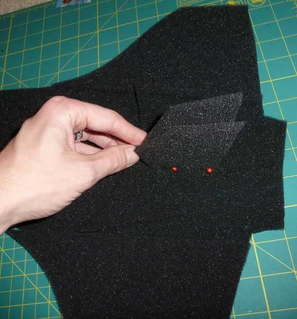 Nota: Usted puede luchar con la espuma para llegar allí con un lápiz o algo, pero me pareció más fácil poner un par de puntadas a través de la espuma para fijar a las costuras de la cubierta. Sólo tenga cuidado de no conectar al revés!