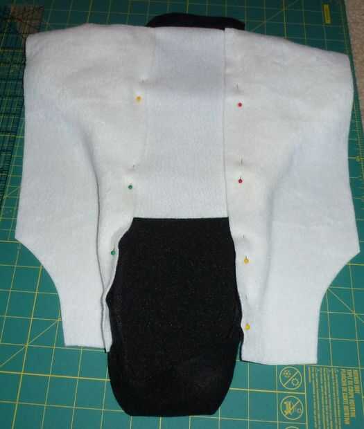 Prender las piezas del cuerpo, y luego coserlas como se muestra. Cosido todo el camino a través de la lanzadera para cerrar las alas, luego había cosida a las costuras juntas por la parte delantera.