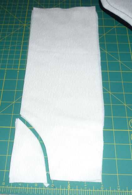 Cortar un bocado de cada uno, 2" en la base y 4" de largo, como se muestra a continuación. Esta parte se fije a la nariz.