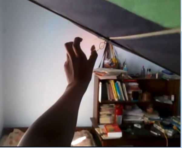 Después de eso tire la goma con la ayuda del gancho, sujetando la cola de la cometa.