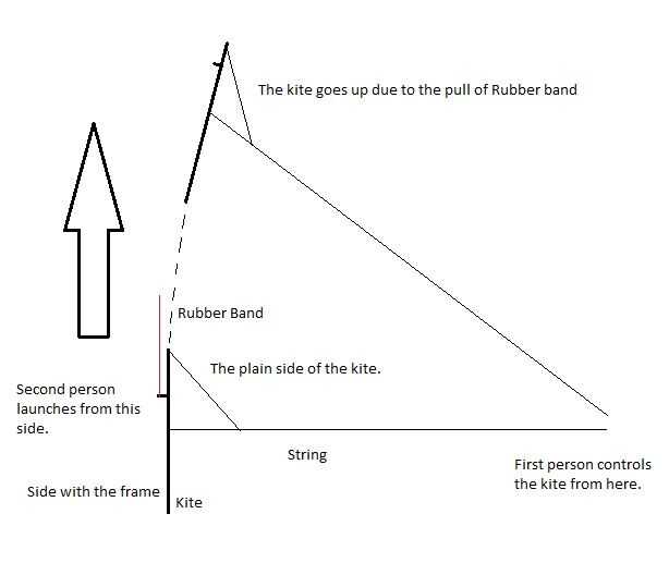 Nota: Cuando usted ATA cuerdas a él, atar a la parte posterior o el lado no-enmarcado de la cometa. Porque la segunda persona (que va a lanzar la cometa) y la primera persona (que controla la cometa) no pueden ser en el mismo lado. Ambos tienen que estar en las diferentes caras de la cometa. La segunda persona se lanzará desde el lado del marco y el regulador controlará desde el lado no enmarcada.