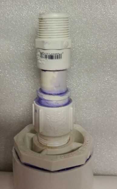 Nota: en el diagrama muestro un 3/4" roscado de acoplamiento entre el adaptador rosca 2" y la válvula del aspersor automático. Esta sería la conexión más simple. Se puede ver en las fotos que no tengo esta parte así que tuve que improvisar con unos accesorios adicionales que tenía.
