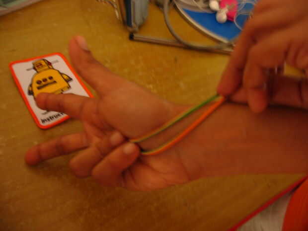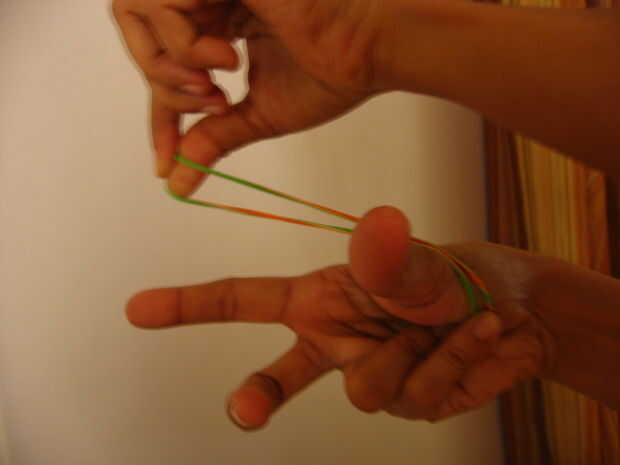 1) ahora gire la goma por detrás de la base del pulgar. (Ver cuadros 1 y 2).