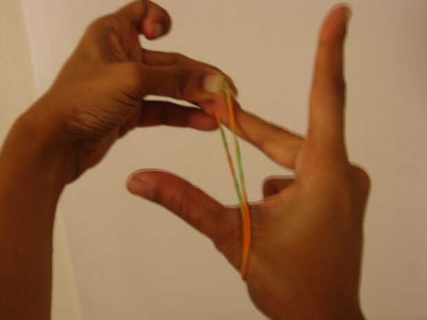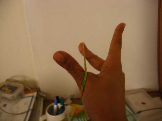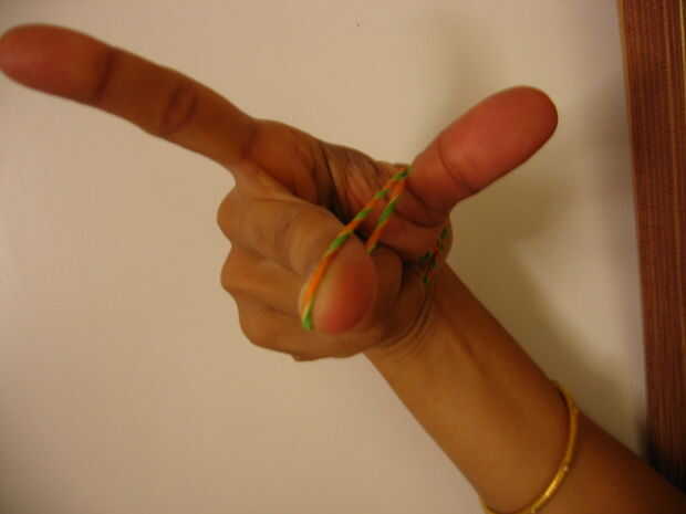 3) bloqueo de la banda de goma firmemente entre la uña y el dedo. (Puede tomar algún tiempo para obtener un ala de este).